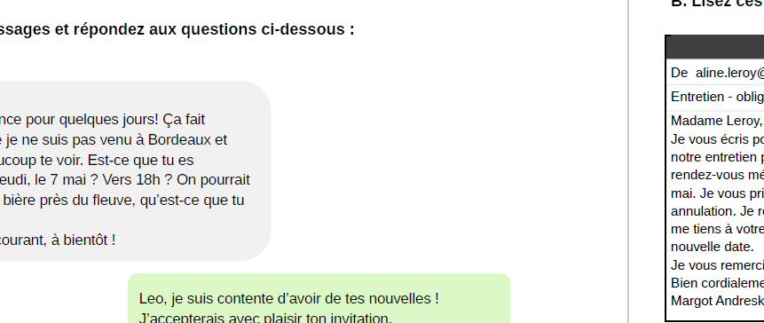 Activité B : ici, la conversation est par mail.